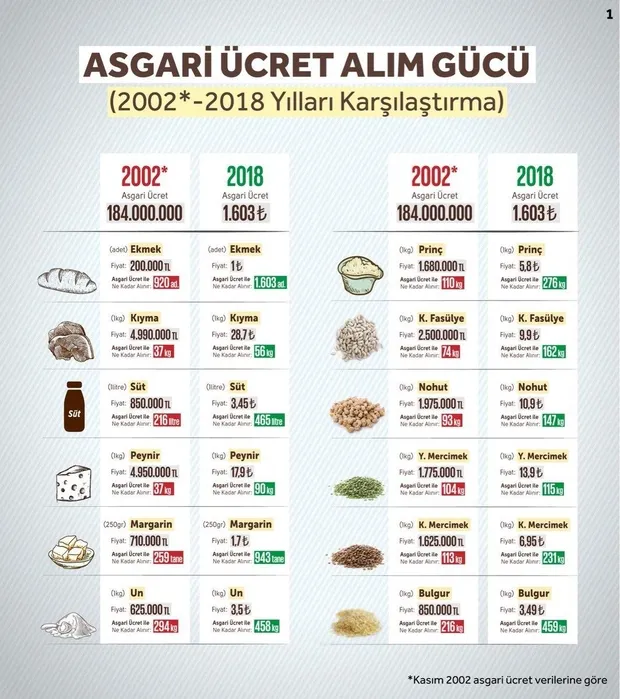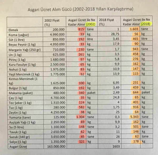 İşte 2002 ve 2018'in asgari ücetlerinin alım gücü farkı: