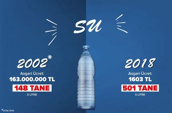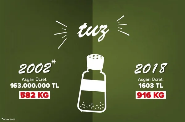 Peki 2002 yılının asgari ücreti olan o zamanın parasıyla 163 milyon lira ile neler alınabiliyordu bugünkü asgari ücretle neler alınabiliyor...
