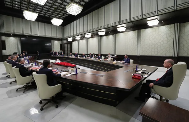 Son dakika haberi! Saat 15.50'de başlayan Başkan Recep Tayyip Erdoğan’ın liderliğindeki Cumhurbaşkanlığı Kabine toplantısı sona erdi. Başkan Erdoğan, Kabine sonrası açıklamalarda bulundu. Yerel seçim mesajı veren Başkan Erdoğan, "Gerçek belediyecilik hizmetinden mahrum kalan şehirlerimizi kurtarmak için önümüzdeki seçimler bir fırsattır." dedi. CHP Genel Başkanı Kemal Kılıçdaroğlu'na tepki gösteren Erdoğan, "Darbecilerle anlaşıp tankların arasından kaçanlar korkaklıklarını gizlemek için iftiraya başvurdu. Son FETÖ'cü hain de hukuk önünde hesap verene kadar, bu terör örgütüyle, uzantılarıyla ve destekçileriyle mücadelemizi sürdüreceğiz." ifadelerini kullandı. Deprem bölgesindeki konutların teslimatı için tarih veren Erdoğan, "Depremin istihdama etkisini en aza indirmek amacıyla başlatılan kısa çalışma ödeneğini 3 ay süreyle uzatıyoruz." şeklinde konuştu. Enflasyonla mücadele mesajı veren Erdoğan, "Ekonomi politikamızda önceliğimiz işsizliği azaltmaktır." dedi.