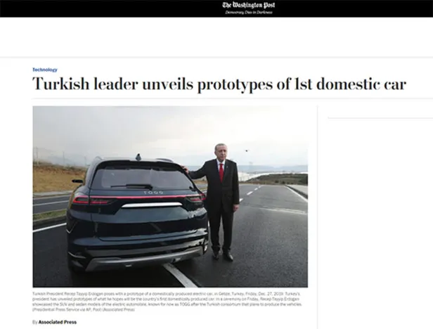 The Washington Post haberi "Türk lider ilk yerli otomobilin prototipini tanıttı" manşetiyle gördü.