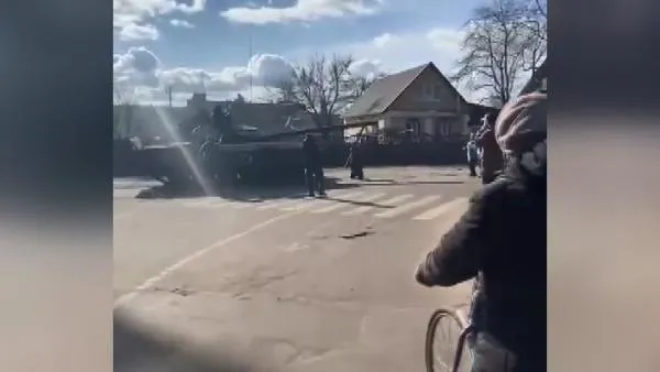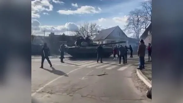Başkent Kiev'in kuzeydoğusundaki Çernihiv Bölgesinde bulunan Bakhmach kasabasında halk yolda ilerleyen Rus tanklarının önüne geçerek çıplak elle tankları durdurmaya çalıştı. O anlar sosyal medyada paylaşıldı.