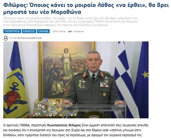 Bu sözlere gönderme yapan Yunanistan Genelkurmay Başkanı Orgeneral Konstantinos 'Floros kim gelmek istiyorsa ölümcül bir hata yapar' dedi.