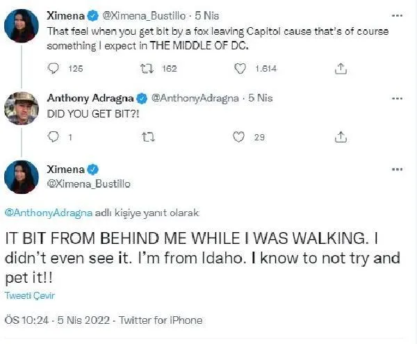 Washington'da ABD kongre binasında görevli polis, kongre binası ve çevresinde 4 Nisan Pazartesi günü tilki saldırısı bildirimleri almaya başlayınca tilkiyi Salı günü yakalayarak test etti.