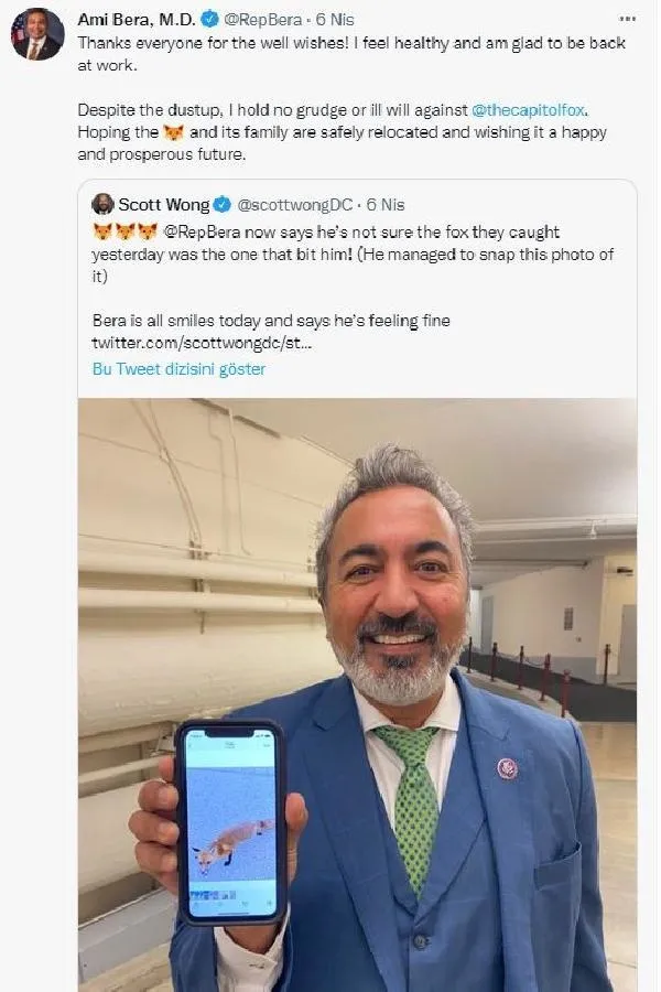 Temsilciler Meclisi'nde kongre üyesi olan Senatör Dr. Ami Bera ve medya organı Politico muhabiri Ximena Bustillo dahil olmak üzere en az 9 kişiyi ısıran kuduz tilki ve yavruları uyutuldu.