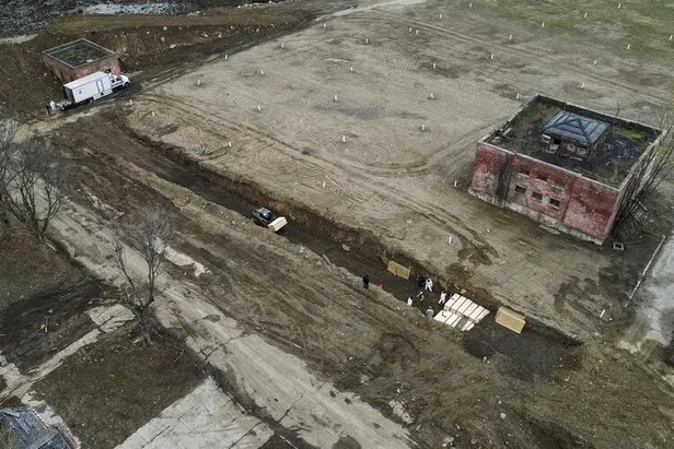 Görüntülerinde, New York'ta salgından vefat eden fakir ve kimsesizlerin yan yana gömüleceği yerler olduğu belirtilen mezarların, savaş durumunu andıran siperler görülüyor.