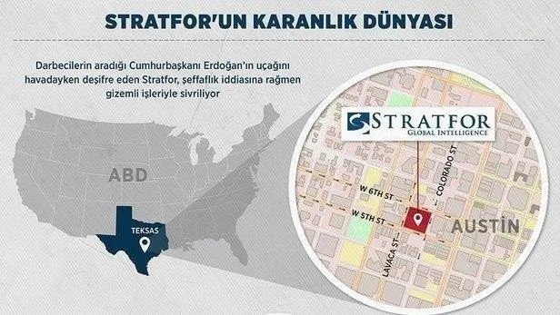 Fetullahçı Terör Örgütü'nün (FETÖ) 15 Temmuz'daki darbe girişimi esnasında Başkan Recep Tayyip Erdoğan'ın uçağının lokasyonuyla ilgili 3 kez paylaşımda bulunarak dikkatleri üzerine çeken ABD'nin özel istihbarat örgütü Stratfor darbeye desteğini açık etmişti.