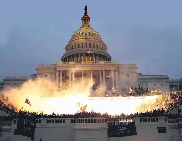 ABD Kongre binası, 1814'teki İngiliz işgalinden bu yana ilk kez saldırıya uğradı. Kullanılan bazı kimyasalların alevi geceyi böyle aydınlattı.