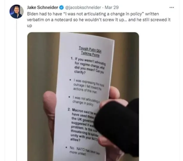 Söz konusu nottaki birinci soru olan 'Rejim değişikliğini savunmuyorsanız ne demek istediniz? Açıklayabilir misin?'e Biden'ın şu cevabı yazdığı görüldü;