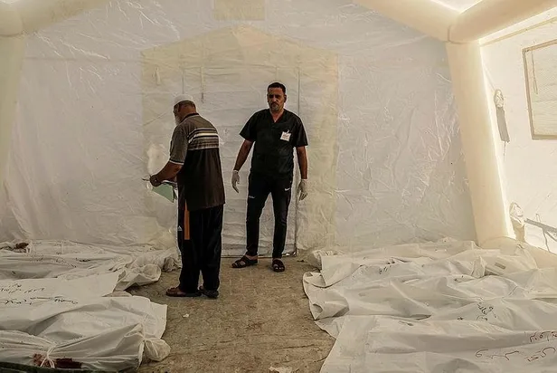 Filistinliler, Gazze Şeridi'ndeki sağlık durumunun kötüleşmesiyle, İsrail bombardımanı nedeniyle hayatını kaybedenlerin cenazelerini kapasitesi dolan El Şifa Hastanesi önüne koymaya başladı.