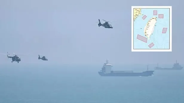 Komünist Parti güdümündeki Çin medyası tarafından yayınlanan tatbikat haritasında adanın tam anlamıyla çevrelendiği görülüyor.