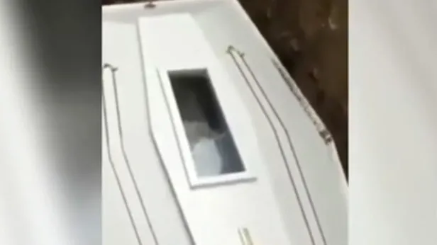 Rahibin dua okuduğu sırada ise, mezara indirilen tabutun içinde bir hareketlenme oldu. O anlar cep telefonu kameraları tarafından kaydedildi.
