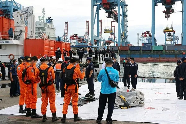 Cakarta Emniyeti Sözcüsü Yusri Yunus, emniyet birimlerine bağlı ekiplerin yaptığı arama kurtarma çalışmalarında yolculara ait bazı eşya ve ceset parçalarının bulunduğunu açıkladı.