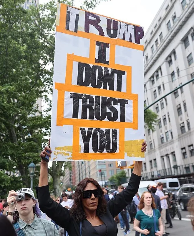 Trump karşıtları, "Onu hapse tıkın" şeklinde slogan atarken bazı vatandaşlar, ellerinde ABD bayrakları ve "Asla teslim olma" pankartları ile Trump'a destek verdi. İki grup arasında zaman zaman sözlü sataşmalar yaşandı.