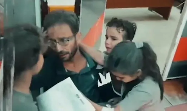 Gazze'de yürek yakan görüntü: Filistinli baba, bombardıman korkusuyla ağlayan çocuklarını teselli etti