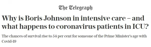 İngiliz basını, Johnson'ın durumunu ilk sayfalarından okurlarına duyurdu. Daily Mirror, "Hasta Boris yaşam mücadelesi veriyor" manşetiyle çıktı. The Telegraph gazetesinin başyazısında, "Başbakana acil şifa diliyoruz" ifadesi vardı.