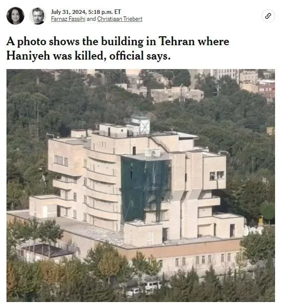 New York Times'a konuşan bir diğer İranlı yetkili ise Telegram kanallarında paylaşıma sokulan hasarlı bir binanın Haniye'nin öldürüldüğü yer olduğunu söyledi.