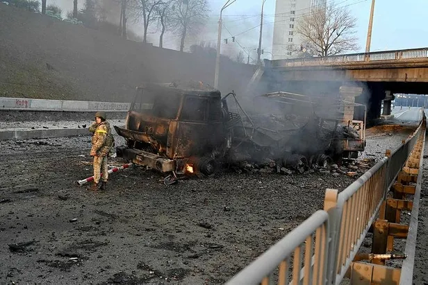 Associated Press (AP) haber ajansı, Kiev sokaklarında yanmış bir askeri kamyonun fotoğraflarını bu sabah dünyaya servis etti.