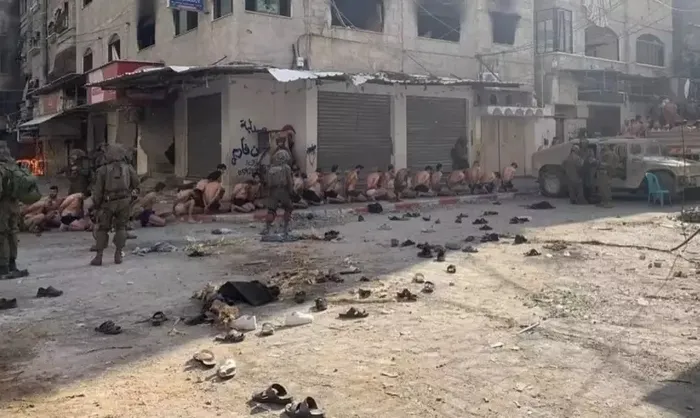 Katil İsrail ordusundan bir skandal daha! Gazze'de onlarca sivil erkeği soyup gözünü bağladılar! Hamas'tan İsrail basınında çıkan haberlere yalanlama