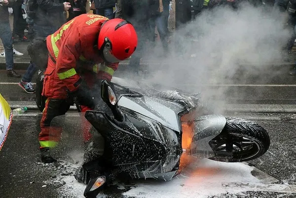 Republique Meydanı'na yürüyen eylemciler ile polis arasında zaman zaman gerginlik yaşandı. Göstericiler, bir motosikleti ateşe verdi. İçişleri Bakanı Gerald Darmanin, Twitter hesabından, başkentteki gösteride 81 kişinin gözaltına alındığını belirtti.