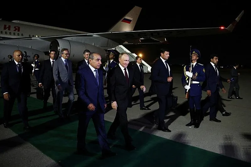 Putin'i, başkent Bakü'deki Haydar Aliyev Uluslararası Havalimanı'nda Azerbaycan Başbakan Birinci Yardımcısı Yakup Eyyubov ve Dışişleri Bakan Yardımcısı Samir Şerifov karşıladı.
