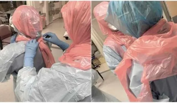 Ulusal Sağlık Sistemi (NHS) personelleri, koruyucu tulum bulamadığı için üzerlerine kalın poşetler geçirerek hastalarla ilgileniyor.