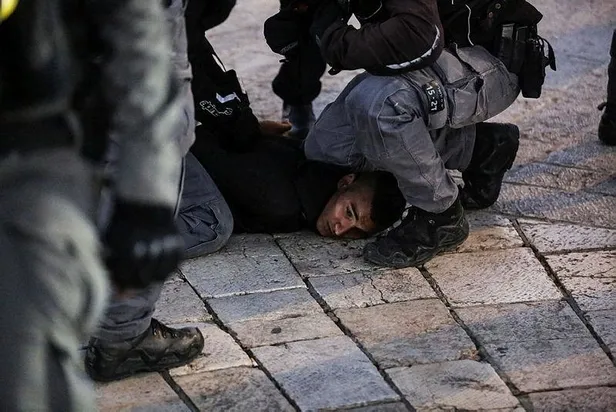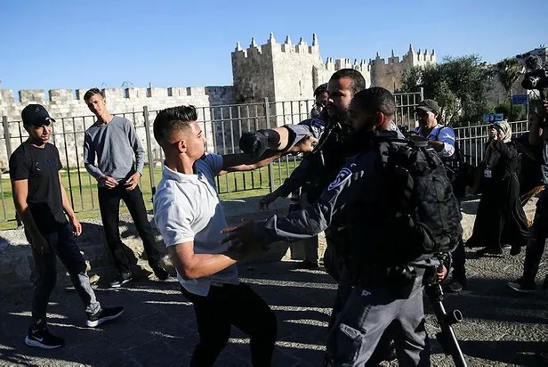 İsrail polisi Mescid-i Aksa'da fanatik Yahudilerin Hazreti Muhammed'e hakaretini protesto eden Filistinlilere müdahalede bulundu.