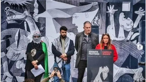 İspanya İç Savaşı'nın sembolik mekanlarından, ünlü ressam Pablo Picasso'nun tablosunu yaptığı, 1937 yılında Alman ve İtalyan hava kuvvetlerince bombalanan Guernica kasabasında Filistin'e destek için yüzlerce kişi tarafından insan mozaiği oluşturuldu.