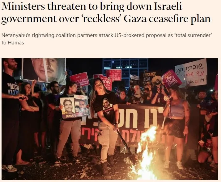 Başbakan Binyamin Netanyahu'nun aşırı sağcı müttefikleri ABD'nin teklifini "Hamas'a tamamen teslim olmak" olarak nitelendirdi ve teklifin kabul edilmesi halinde İsrail hükümetini devirmekle tehdit etti.