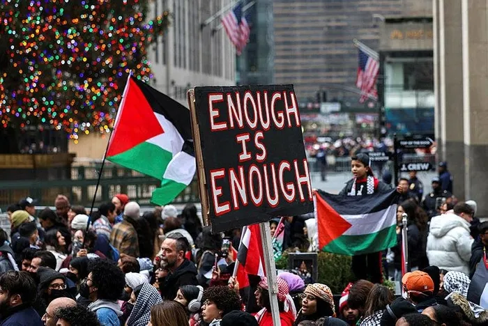 Filistin yanlısı yüzlerce protestocu, soykırımcı İsrail'e destek veren ABD Başkanı Joe Biden'ı protesto etti. New York'ta toplanan protestocular, "Allah-u Ekber" ve "Özgür Filistin" yazılı pankartlar taşırken terör devletinin PR ajanslarından FoxNews, 11 Eylül saldırılarına gönderme yaptı ve protestocuları açıkça hedef gösterdi.