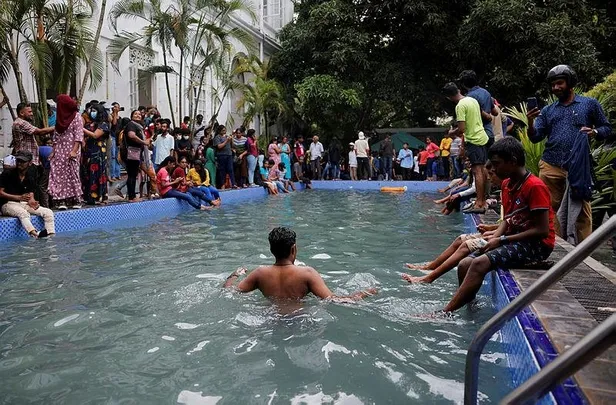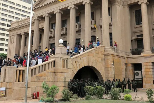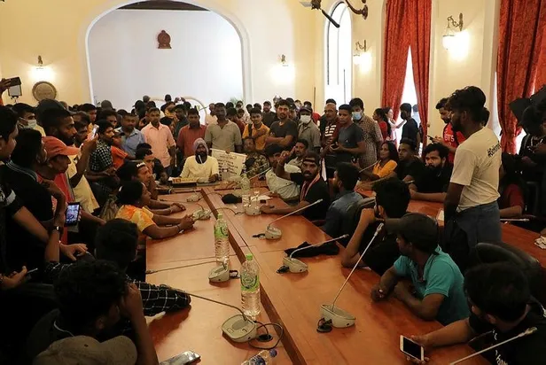 Protestocular, Devlet Başkanı Gotabaya Rajapaksa'nın resmi konutu ve ofisinin bulunduğu yerleşke çevresindeki barikatları aşarak içeri girmişti.