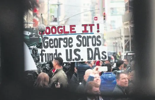 Soros'un adamı olarak gösterilen Manhattan Bölge Savcısı Alvin Bragg,'a tepki yağarken, "Soros defol", "Soros işin bitti", "Soros asla bizi yargılayamaz" sloganları dikkat çekti. Polis, mahkeme bölgesini demir bariyerlerle çevirerek etrafta geniş güvenlik önlemleri alırken, mahkeme bölgesinde bulunan sokak ve caddeler de trafiğe kapatıldı.