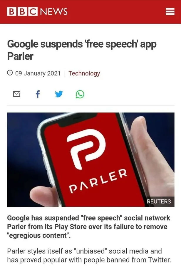 Google ise, Trump'ın hesabını askıya almadığı için Parler uygulamasını süre tanımadan Play Store'dan çıkardı.