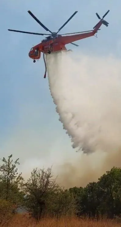 İtfaiye ekipleri, 10 araç, 2 uçak, 1 helikopter ve 34 itfaiye eri yangını söndürmek için çalıştığı, bölge çiftçisinin ise traktörleriyle yangınının ilerlememesi için söndürme çalışmalarına yardım ettiği bildirildi.