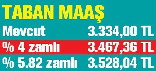 Ocak zammı da bu durumda yüzde 5.82'ye ulaşacak. Tahmin gerçekleşirse, aile yardımı hariç en düşük memur aylığı 3 bin 334 liradan 3 bin 528 liraya ulaşacak. Bu artışla aile yardımı da yükselecek.
