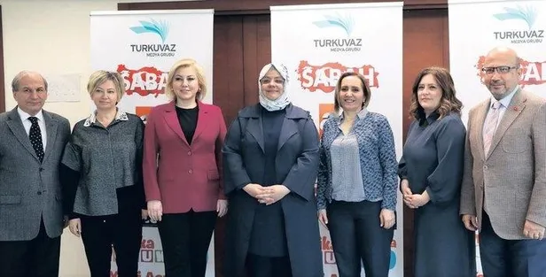 Aile Çalışma ve Sosyal Hizmetler Bakanı Selçuk, (soldan sağa) SABAH Ankara Haber Müdürü Akif Bülbül, Parlamento Şefi Zübeyde Yalçın, ATV Ankara Temsilcisi Şebnem Bursalı, ekonomi muhabiri Hazal Ateş, Daily SABAH Ankara Temsilcisi Nur Özkan Erbay ve Sabah Gazetesi Ankara Temsilcisi Okan Müderrisoğlu'na açıklamalarda bulundu.