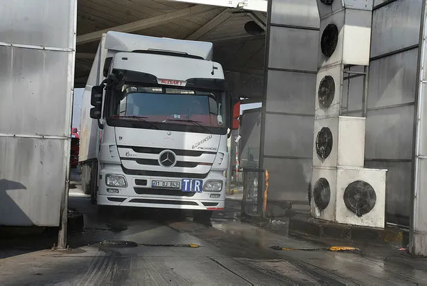 TIR'LAR SIKI DEZENFEKTASYON İŞLEMİNDEN GEÇİRİLİYOR