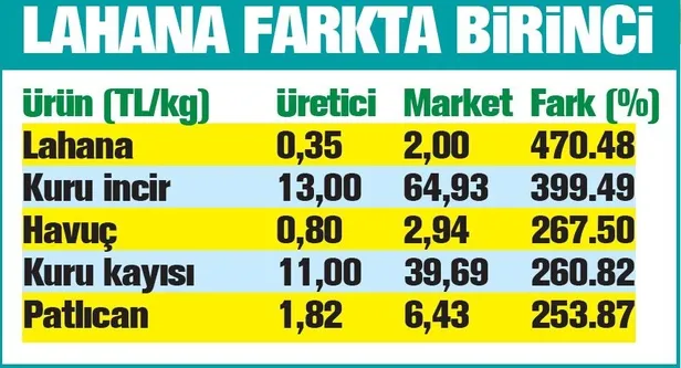 Türkiye Ziraat Odaları Birliği (TZOB) Genel Başkanı Şemsi Bayraktar, Mart ayında üretici-market fiyat farkının 5.7 kata kadar ulaştığını bildirerek, "Üretici fiyatlarında büyük bir düşüş var ancak bu tüketici fiyatlarına yansımıyor" dedi. Üretici fiyatlarında patlıcan, kabak, domates ve salatalıkta yüzde 65'e varan düşüş yaşandığına işaret eden Bayraktar, "Üreticideki bu düşüşe rağmen halkımız ucuza gıda tüketemiyor. Üreticide 35 kuruş olan lahana, markette 2 liraya satılıyor" dedi. Mart'ta markette 23, üreticide 7 üründe fiyat artışı; markette 16, üreticide 17 üründe fiyat düşüşü olduğunu; markette 3, üreticide 10 üründe fiyatın değişmediğini söyleyen Bayraktar, marketlerin zam şampiyonunun ise limon olduğunu belirtti.