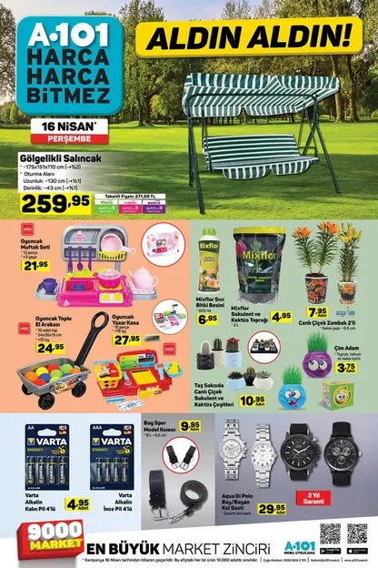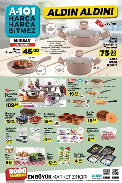 Yüz binlerce kişinin merakla beklediği A101 16 Nisan aktüel kataloğu yayınlandı. Türkiye'nin 81 ilinde şubesi bulunan A101'de Perşembe günleri satışa sunulan ürünler vatandaşların merakını cezbediyor. A101 aktüel ürünler kataloğu yine çok hesaplı. Her Perşembe indirimli ürünler satışa çıkaran A101'de bu hafta yepyeni ürünler müşterileri bekliyor.