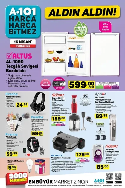 16 Nisan A101 aktüel ürünler kataloğu… Samsung TV ve cep telefonu...
