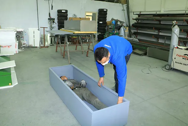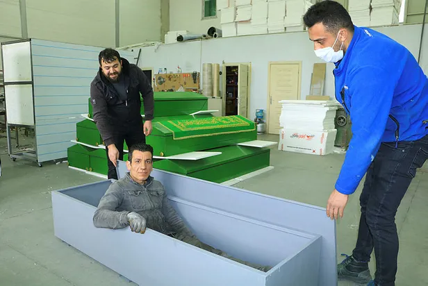 Koronavirüs ölümlerine özel tek kullanımlık tabutların 16 ülkeye ihraç edildiğini belirten firma yönetim kurulu başkanı Volkan Yılmaz, "Firmamız Türkiye geneli morg, otopsi, kadavra ve anatomi ekipmanları üretmektedir. Kovid-19'un ortaya çıkması ile birlikte Covid-19 cenazelerine özel antibakteriyel kurşun kaplama tabutlar ürettik. Bu tabutlar tamamen antibakteriyeldir. Bakteri geçirmez. Tabutlarımız tamamen Covid-19 cenazelerine özeldir.