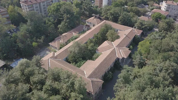 Tarihi hastanenin bahçesinde de peyzaj çalışmaları devam ediyor. Hastanede yapılan çalışmalar havadan da görüntülendi.