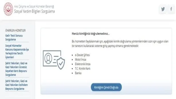 Sorgulama yapılabilmesi için e-devlet sistemine giriş yapılması gerekiyor. Giriş yapıldıktan sonra Aile, Çalışma ve Sosyal Hizmetler Bakanlığı Sosyal Yardım Bilgileri Sorgulama ekranından sorgulama yapılabiliyor.