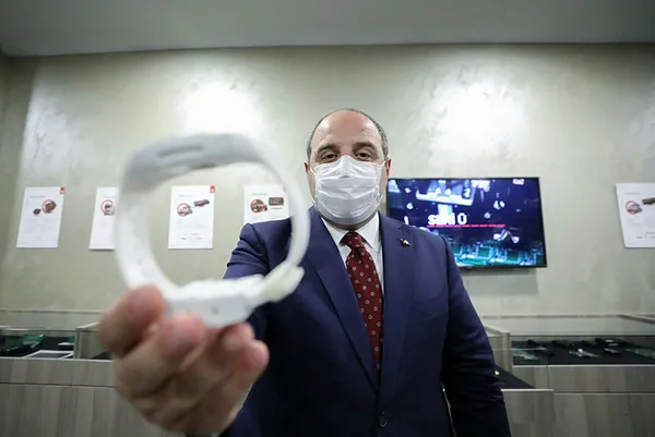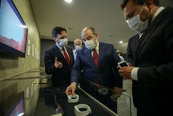 Firmanın Genel Müdürü Ömer Şahin Karaman'dan bilgi alan Varank, üretim tesisinde millileştirilen elektronik kelepçelerin prototiplerini inceledi.
