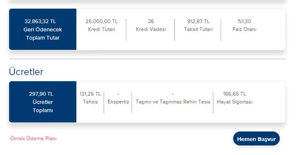 25.000 TL İHTİYAÇ KREDİSİ HESAPLAMA