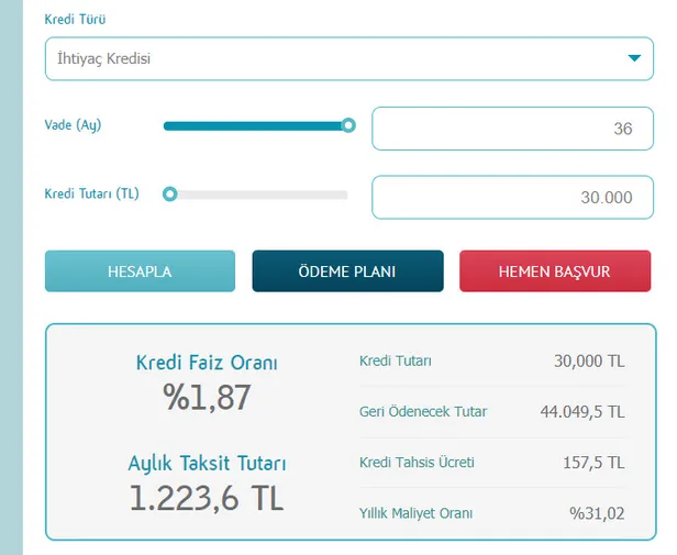 Türkiye'de acil nakit ihtiyacı yaşayan vatandaşların bu sorunlarına çözüm üretirken başvurdukları ilk yol bankalardan ihtiyaç kredisi kullanmak oluyor. Bu krediler kullanılırken de kamu bankaları özel bankalara oranla daha çok tercih ediliyor. Bu bağlamda 30.000 TL hızlı kredi veriliyor. Acil para ihtiyaçlarınız için bankanın yaptığı bu kredi kampanyasına katılabilirsiniz.