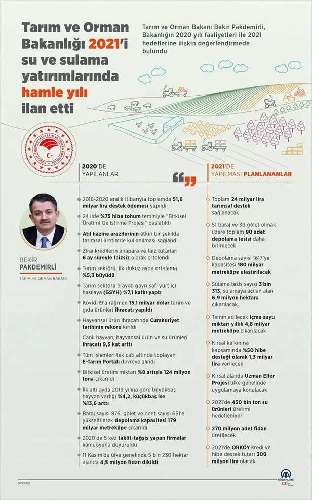 Tarım ve Orman Bakanı Bekir Pakdemirli, Bakanlığının 2020 yılı faaliyetleri ve 2021 hedeflerine ilişkin değerlendirmede bulundu.