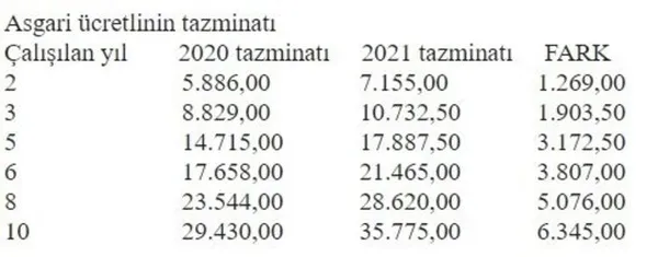 İŞTE ASGARİ ÜCRETLİNİN TAZMİNATI