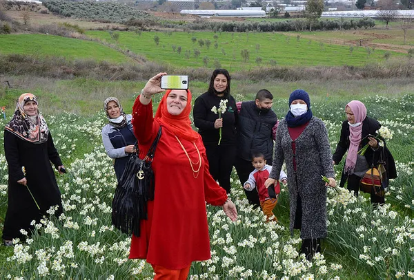 Öte yandan, nergislerin görsel şölen oluşturduğu tarlaya gelen çok sayıda kişi de bu güzel görüntü içinde çekilen fotoğraflarını sosyal medyada paylaşıyor.