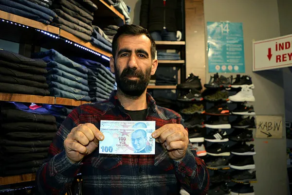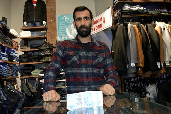 Erciş ilçe merkezde giyim mağazası işleten 4 çocuk babası Fatih Kılıç, akşam dükkanı kapamadan önce hesapları düzenledi. Saydığı paralardan 100 TL'sinin sağ üst köşesinde bir sıfırın olmadığını fark etti.