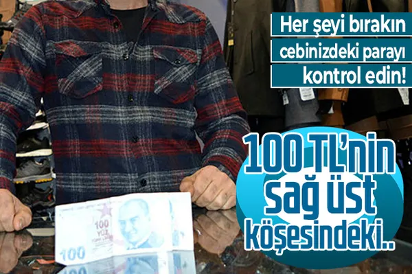 Cebinizde servet taşıyor olabilirsiniz! 100 TL'nin sağ üst köşesindeki...